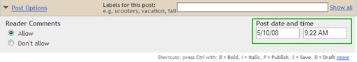 Its very simple to activate this feature, when you are drafting a post, on the post editor page, click on the "Post Options" just toggle to show the "Post date and time" fields. Then, type your relevant post date and time accordingly. When you click on the "Publish" button your post will be "Scheduled" accordingly to that date and time which you have entered. When the date and time of the post arrive then it will automatically published to your blog without your presence in front of your computer.
